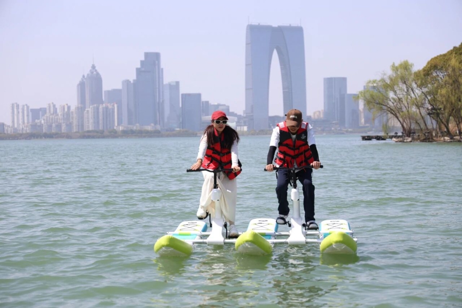 值得一提的是,园区的水域将为游客带来不一样的体验:或乘船登临桃花岛,漫步光屿牧场与萌趣动物互动,打卡丛林魔网的惊险刺激,体验水上自行车的自在惬意;或搭乘中央河观光专线,白日看两岸绿植葱郁、建筑错落,夜间赏灯光璀璨、晚风拂面;若是偏爱动感体验,浮筒船、双体大帆船、龙骨帆船等多种选择,在与风与水的相拥中,收获别样快感,让每一位因“赛”而来的人,不虚此行。